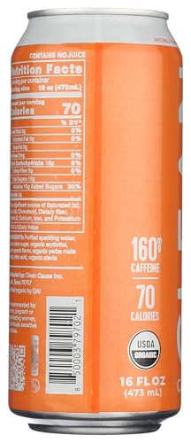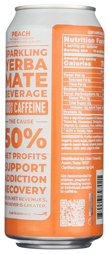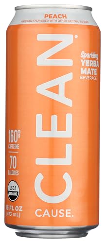 Clean Cause Yerba Mate Energy Drink, Peach Flavor, USDA Organic for Busy Professionals on the Go Boosting Energy and Foc