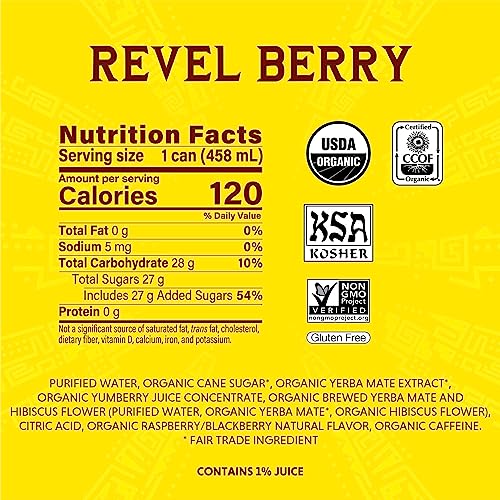 Guayaki Organic Revel Berry Yerba Mate 4pk for Energy Boost and Heart Health | Guayaki Organic Revel Berry Yerba Mate 4