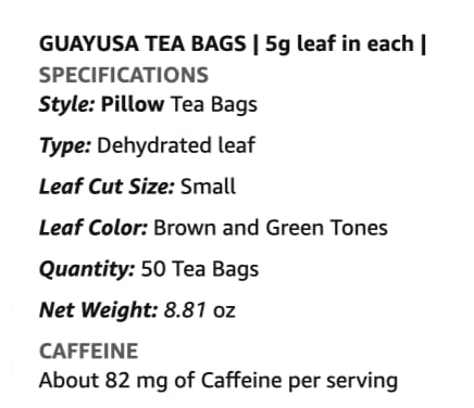 Each serving of our guayusa herbal tea organic contains approximately 82 mg of caffeine, providing a balanced energy boost and performance enhancement.