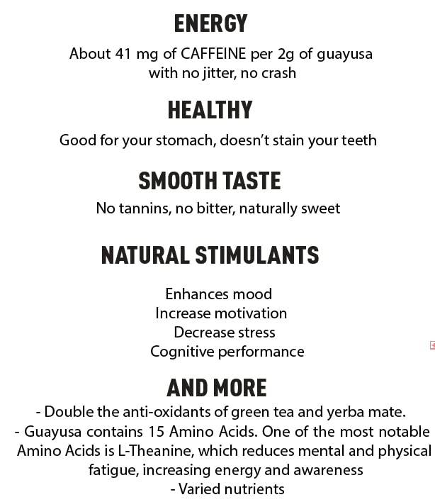 Guayusa, also known as guayasa tea, guyausa, gayusa tea, guayusa leaf, guyusa tea, or guayusa tea organic. Our product options include organic guayusa tea, guayusa powder, guayusa capsules, guayusa tea bags, guayusa extract, loose green tea leaves organic, and loose leaf tea.