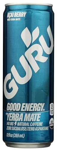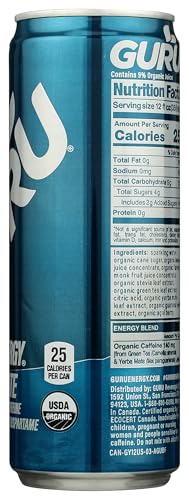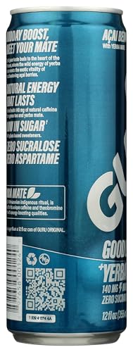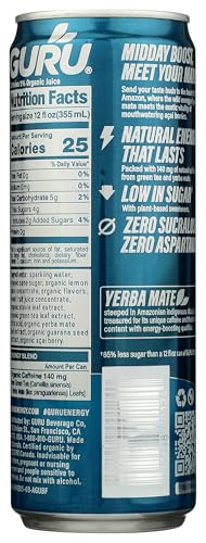 GURU Organic Yerba Mate Energy Drink for Active Lifestyles, USDA Organic | GURU Organic Yerba Mate Energy Drink, 12 Fl