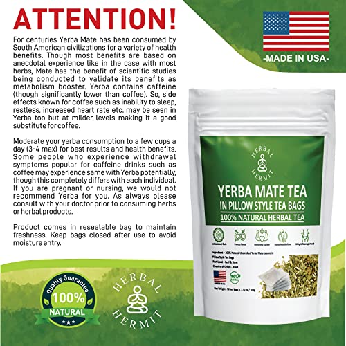 Herbal Hermit Yerba Mate Herbal Teas – Natural Chlorophyll Rich, Made in USA – 50 Tea Bags – Perfect for Health-Consciou
