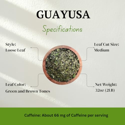 – Enjoy a balanced caffeine boost with each serving of this guayusa loose leaf tea. Approximately 66 mg of caffeine per serving provides a performance-enhancing energy without the jitters or sudden crash.