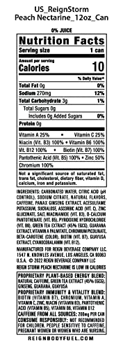 BETTER FOR YOU ENERGY: REIGN Storm is packed with 200mg of plant-based caffeine, biotin, and B vitamins for enhanced energy. It also includes zinc and vitamins A and C, all in a convenient, functional formula.