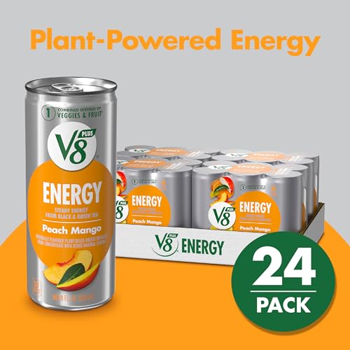 V8 Energy Peach Mango Juice Energy Drink for Active Adults on the Go, Office, Gym, 8 fl oz Can (24 Pack) V8 Energy Pea