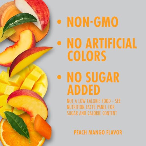 Non-GMO and gluten-free, V8 +Energy Peach Mango Juice does not contain any artificial colors or added sugars. It is not a low-calorie food; please check the nutrition panel for specific sugar and calorie content.