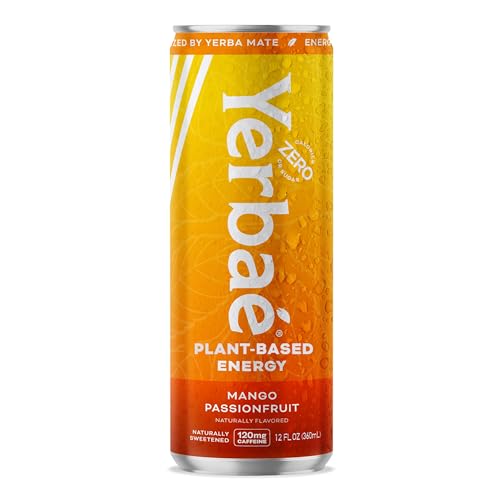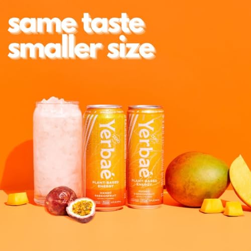 YERBAÉ Energy Mango Passion Fruit 12oz Slim Cans 120mg Caffeine 0 Sugar Healthy Beverage
