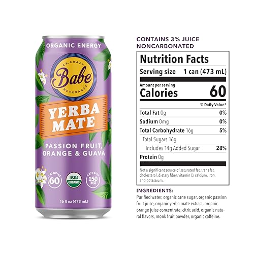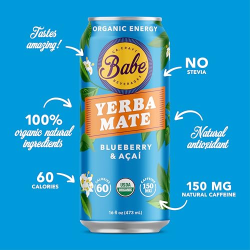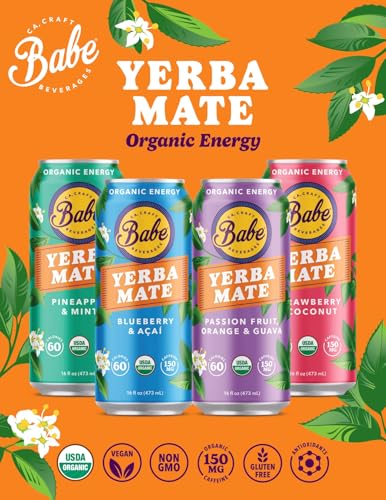 Includes twelve (12) 16 oz cans of Babe Yerba Mate organic clean energy drink alternative, Mix Flavors, 150mg caffeine; ready-to-drink new and high quality.